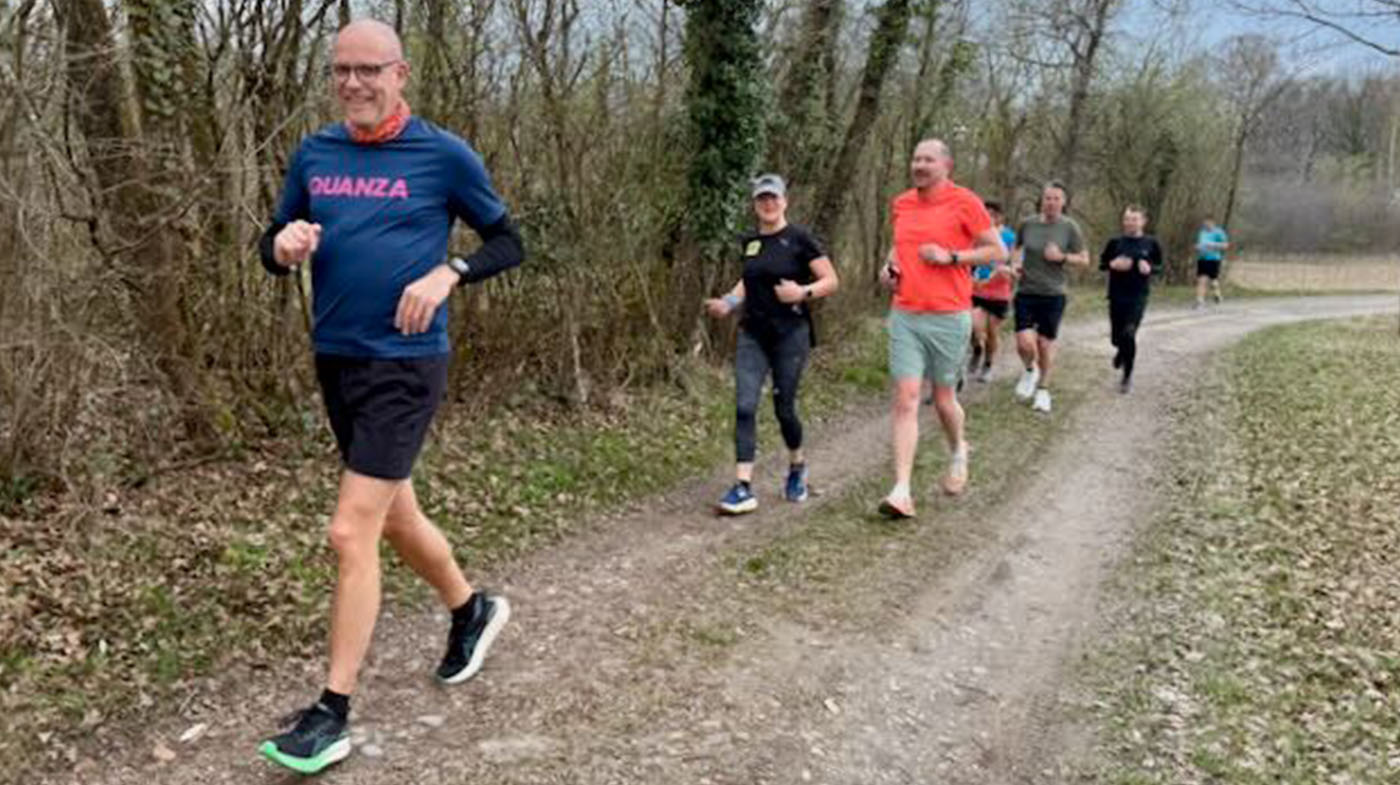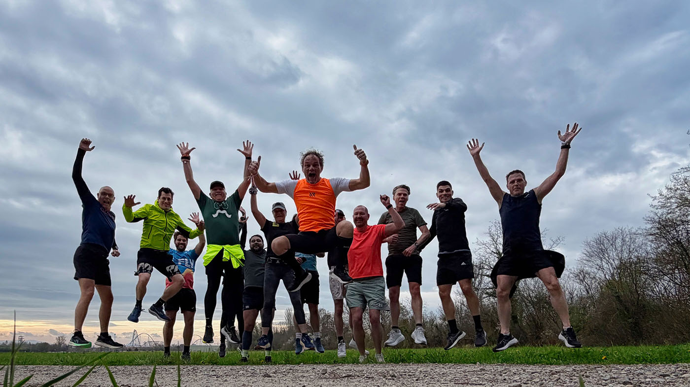 Na een gezamenlijke warming-up vertrok de groep voor hun ronde. Dank gaat uit naar de ‘running masters’ Frans ter Borg en Bert van Meel, evenals Barend Frans voor de inmiddels bekende fotomomenten die deze traditie vastleggen.